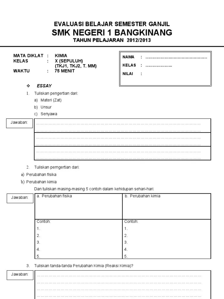 Dengan materi uas kimia kelas 10 semester 1 berisikan tentang bab yang.